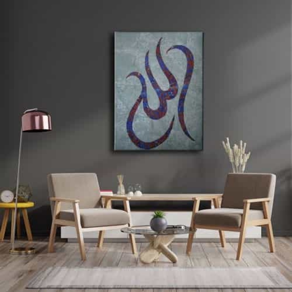 Allah Ebru Sanati Dini Kanvas Tablo