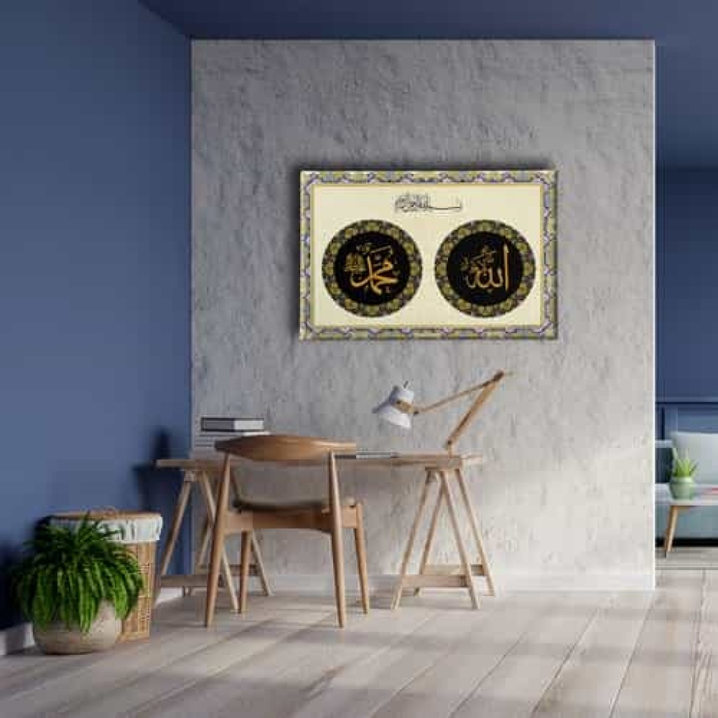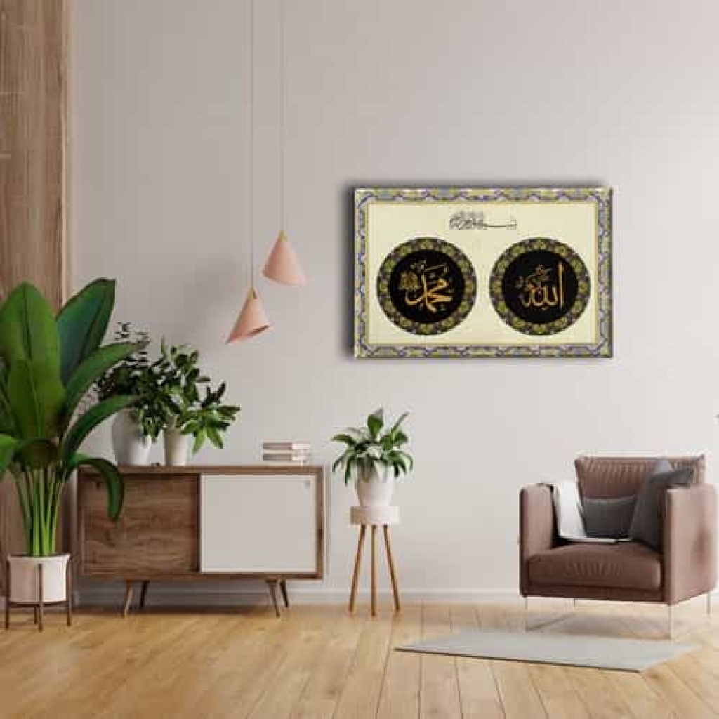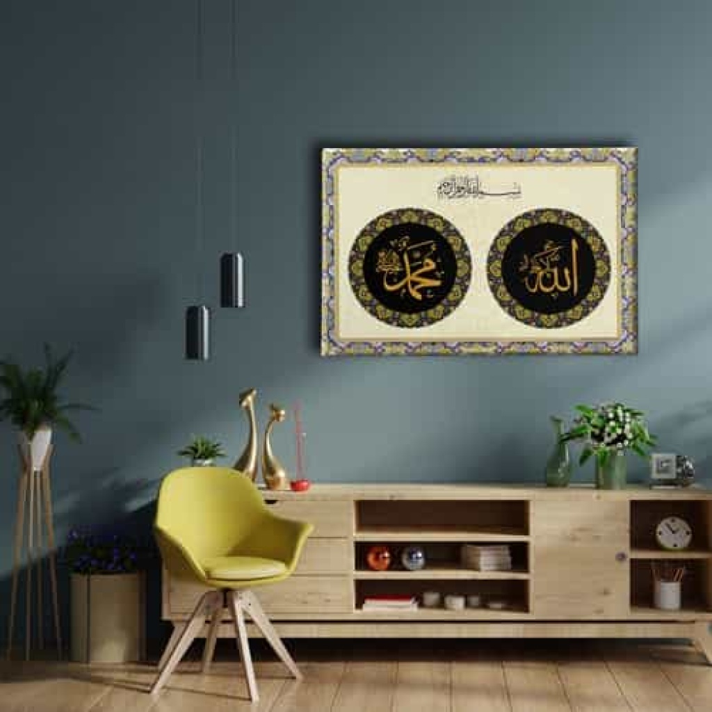 Allah - Muhammed - Besmeleli Dini Kanvas Tablo