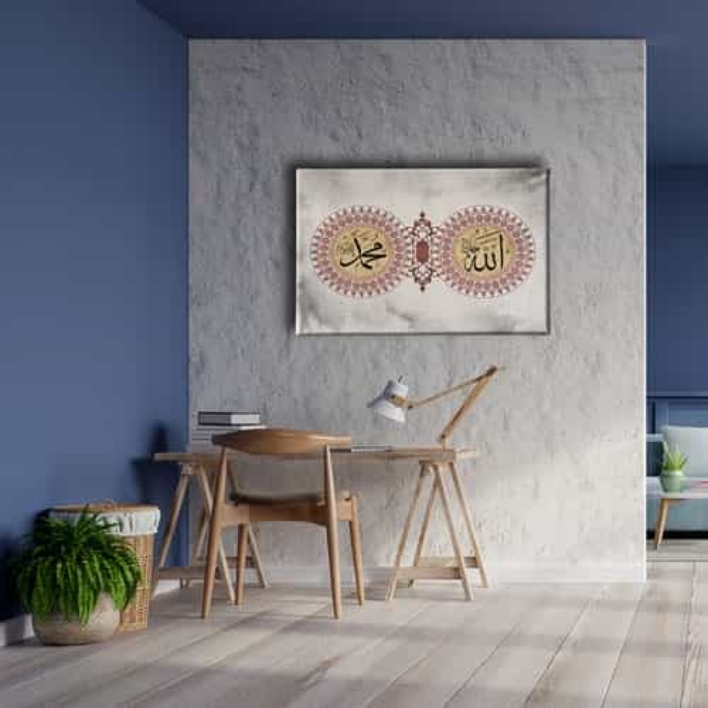 Allah - Muhammed Motifli Dini Kanvas Tablo