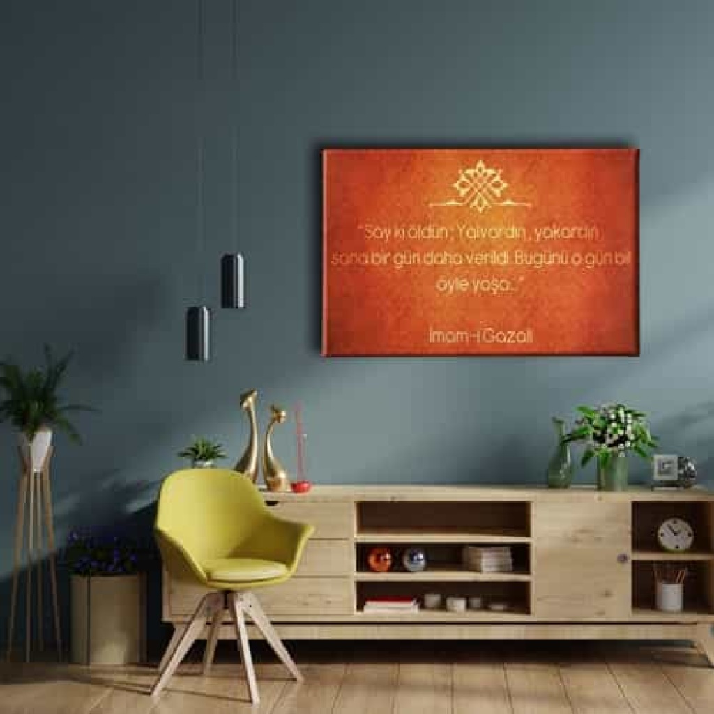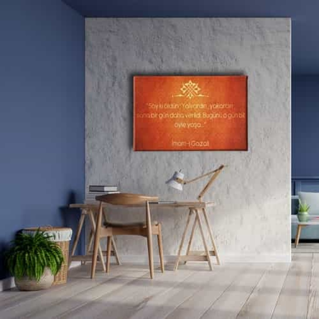 Imam Gazali Sozlu Kanvas Tablo: Bu sik tablo, Desenlio'nun ozel koleksiyonunda yer alan premium bir tasarim urunudur. Dini>ayetler Ve Sureler kategorilerinde dikkat ceken bu parca, AYY152 urun koduyla yuksek standartlarda uretilmistir. Guzel Dilekler Ayetlerde GizliNazar Duasi, Bereket Duasi, Ayet-El Kursi kanvas tablolari ile dualar evinizden ve ofisinizden eksik olmasin. Kiymetli dualardan olusan kanvas tablolar ile hem evinizi/ofisinizi dekore edin, hem de dualarin kiymetli gucunu cevrenizden eksik etmeyin.... Yasam alanlariniza sanatsal bir dokunus katmak ve duvarlarinizda estetik bir odak noktasi olusturmak icin idealdir.