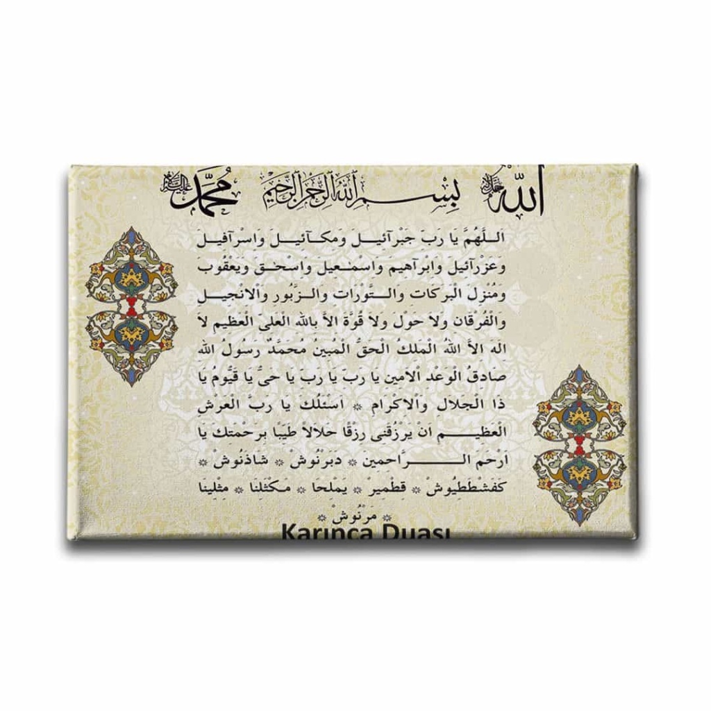 Karinca Duasi Motifli Ayetli Kanvas Tablo: Bu sik tablo, Desenlio'nun ozel koleksiyonunda yer alan premium bir tasarim urunudur. Dini>ayetler Ve Sureler kategorilerinde dikkat ceken bu parca, AYY139 urun koduyla yuksek standartlarda uretilmistir. Guzel Dilekler Ayetlerde GizliNazar Duasi, Bereket Duasi, Ayet-El Kursi kanvas tablolari ile dualar evinizden ve ofisinizden eksik olmasin. Kiymetli dualardan olusan kanvas tablolar ile hem evinizi/ofisinizi dekore edin, hem de dualarin kiymetli gucunu cevrenizden eksik etmeyin.... Yasam alanlariniza sanatsal bir dokunus katmak ve duvarlarinizda estetik bir odak noktasi olusturmak icin idealdir.