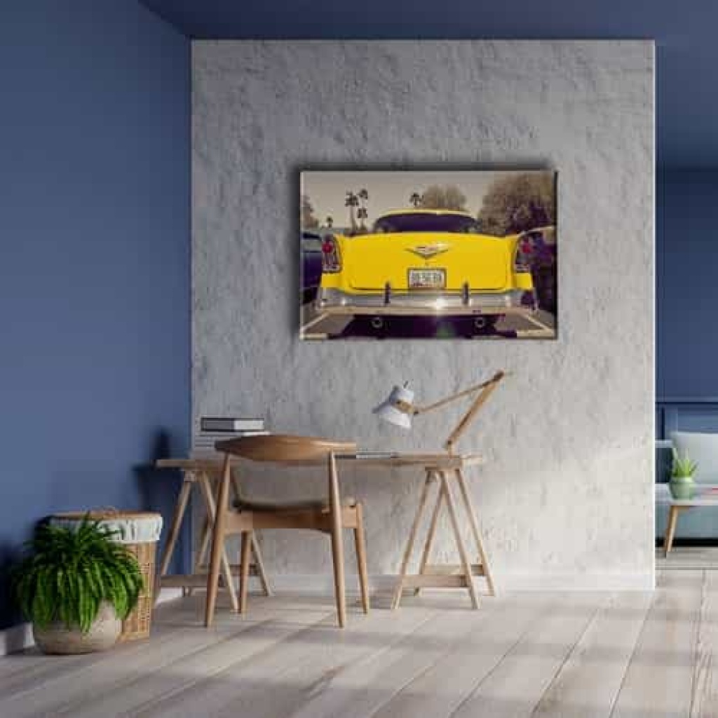 Klasik Sari Araba Canvas Tablo