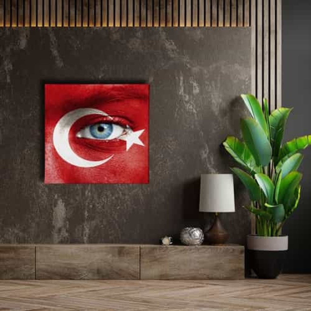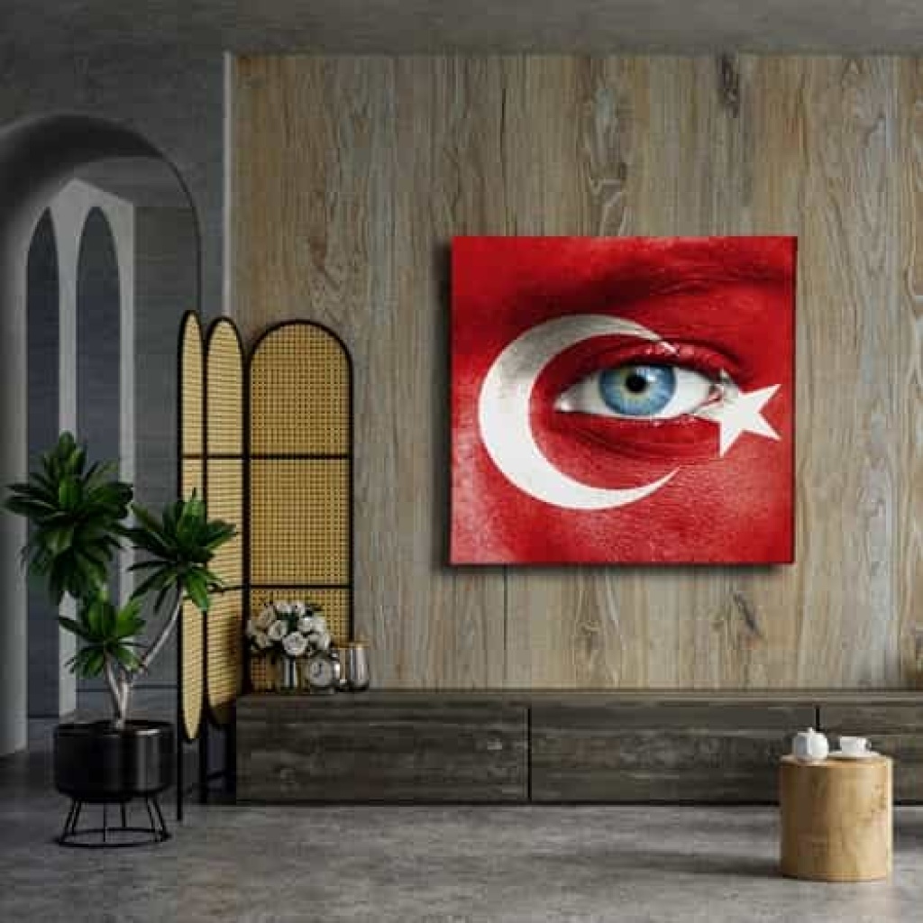 Mavi Goz -ay Yildiz Kanvas Tablo : Bu sik tablo, Desenlio'nun ozel koleksiyonunda yer alan premium bir tasarim urunudur. Kanvas Tablolar>cami Turbe Kutsal Emanet, Kare Gorseller kategorilerinde dikkat ceken bu parca, ABK104 urun koduyla yuksek standartlarda uretilmistir. Sanli Bayraklar Duvarlarinizda DalgalansinBir ulkenin en guzel temsillerinden biri bayragidir. Ofisiniz, eviniz veya siz neredeyseniz sanli bayraklardan olusan ve ozel olculerle uretilen kanvas tablolar ile duvarlariniz ulkenizden bir parca tasisin.  Osmanli Devlet Armasi Kudretin SimgesidirOsmanli Devleti’nin gucunu hissetmek, gelen misafirlerinize bu gucu hatirlatmak icin Osmanli Devlet... Yasam alanlariniza sanatsal bir dokunus katmak ve duvarlarinizda estetik bir odak noktasi olusturmak icin idealdir.