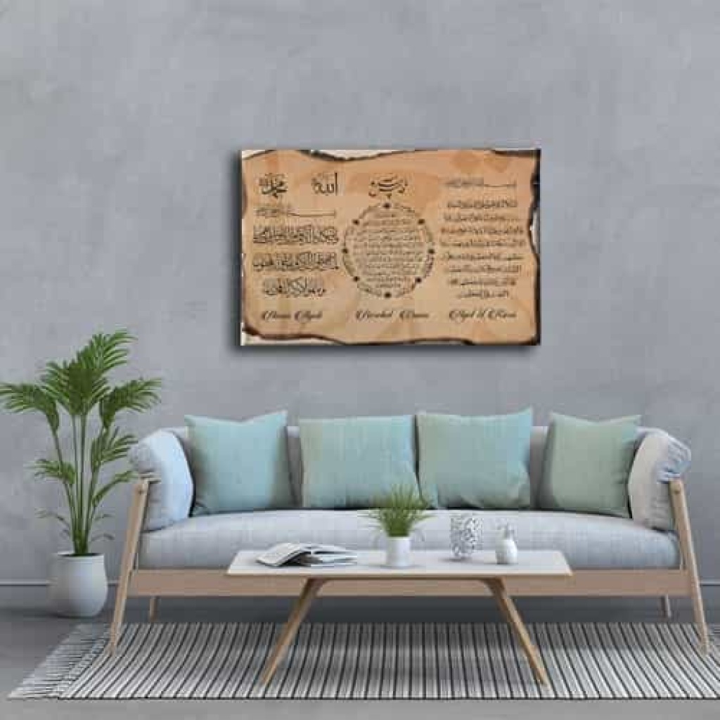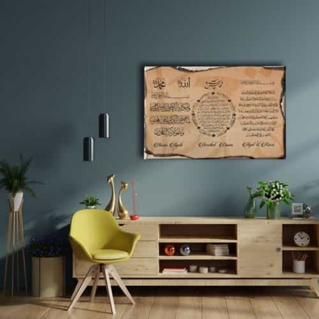 Nazar-bereket-ayet-el Kursi Ayetli Kanvas Tablo: Bu sik tablo, Desenlio'nun ozel koleksiyonunda yer alan premium bir tasarim urunudur. Dini>ayetler Ve Sureler kategorilerinde dikkat ceken bu parca, AYY155 urun koduyla yuksek standartlarda uretilmistir. Guzel Dilekler Ayetlerde GizliNazar Duasi, Bereket Duasi, Ayet-El Kursi kanvas tablolari ile dualar evinizden ve ofisinizden eksik olmasin. Kiymetli dualardan olusan kanvas tablolar ile hem evinizi/ofisinizi dekore edin, hem de dualarin kiymetli gucunu cevrenizden eksik etmeyin.... Yasam alanlariniza sanatsal bir dokunus katmak ve duvarlarinizda estetik bir odak noktasi olusturmak icin idealdir.