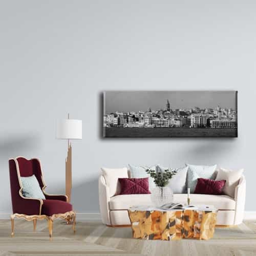 Siyah Beyaz Karakoy Panoramik Kanvas Tablo